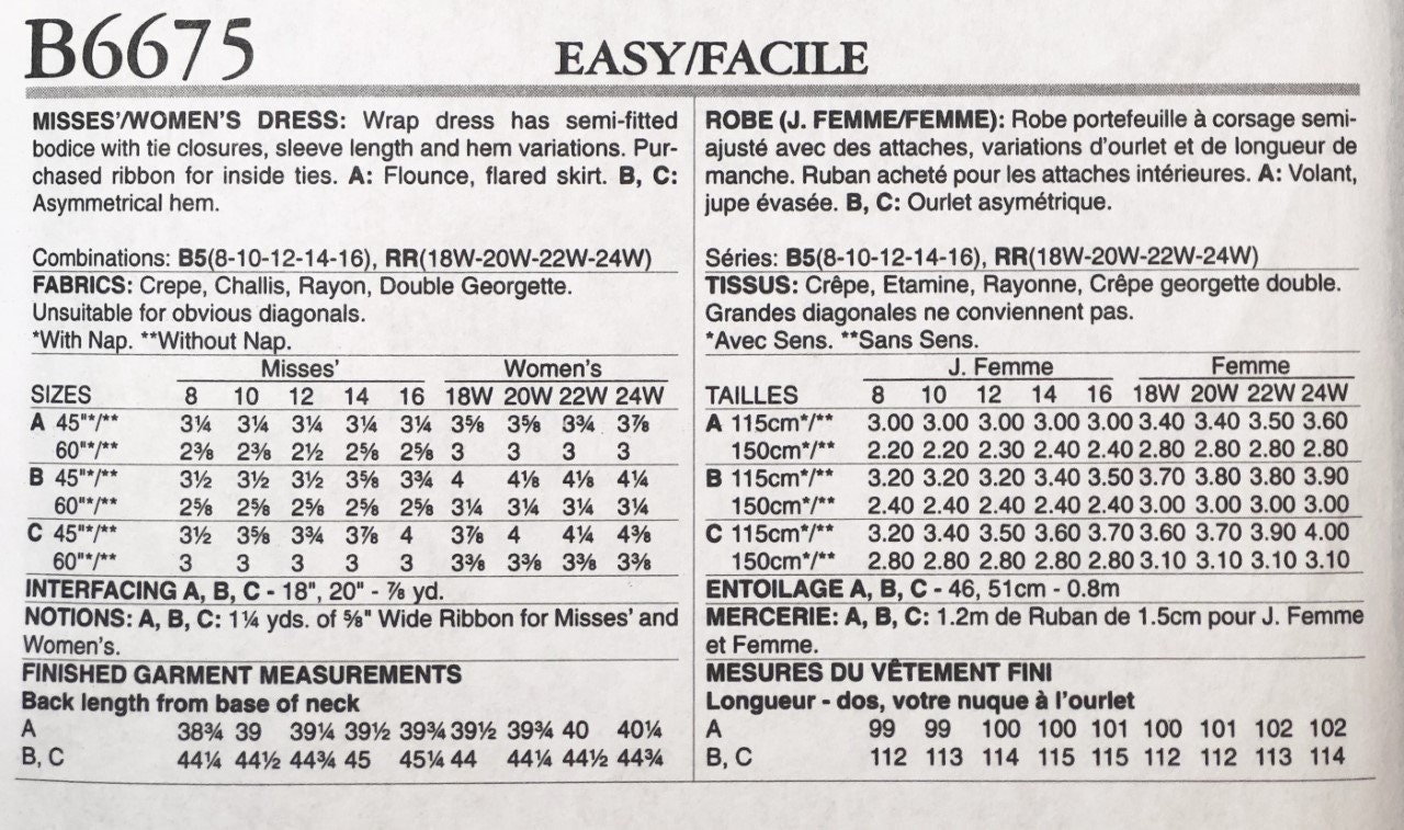 Butterick 6675 Misses Women S Plus Size Easy To Sew Wrap Etsy